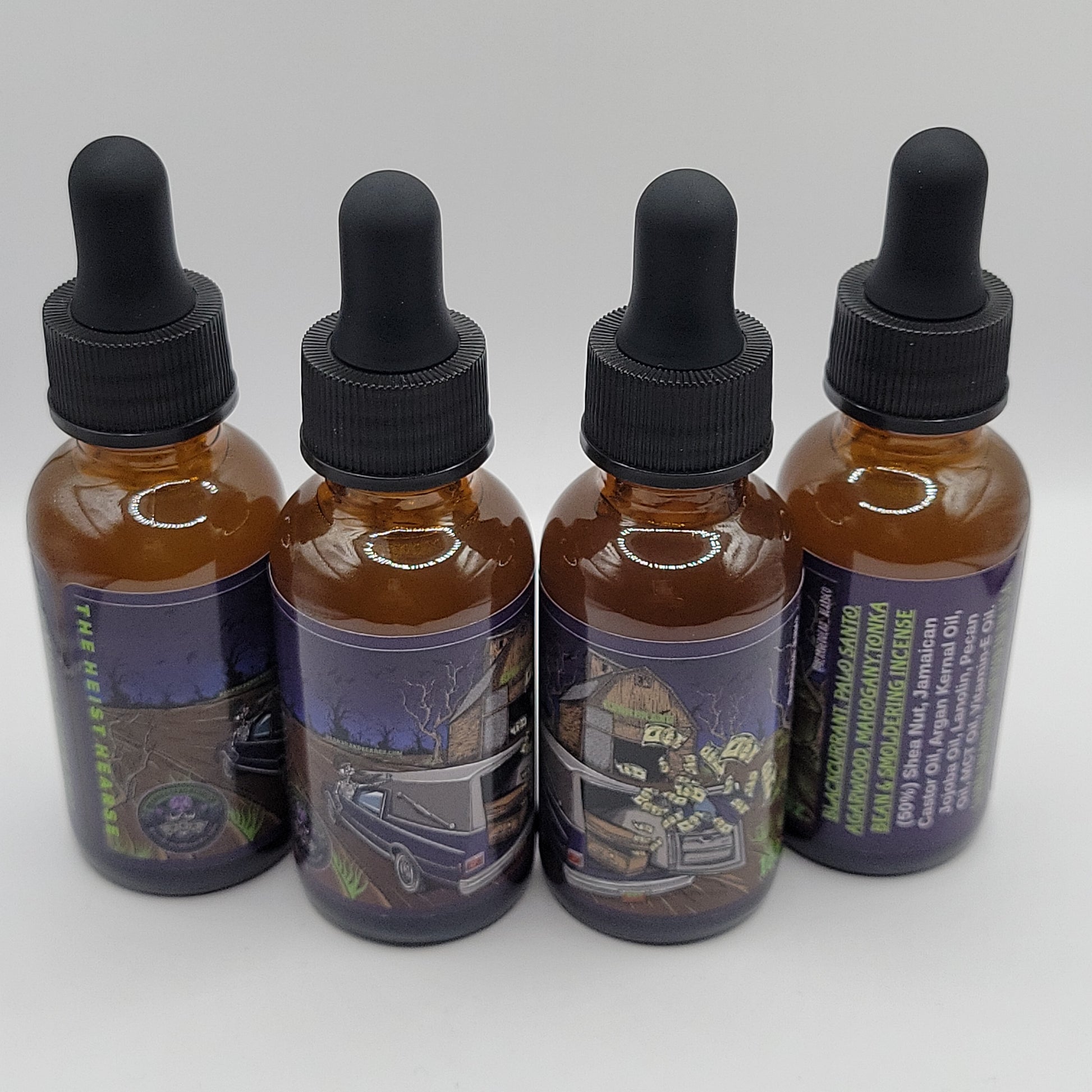 •Beardoil (1oz): 50% African Shea Nut Oil Jamaican Black Castor Oil, Argan Kernal Oil, Jojoba Seed Oil, Lanolin Oil, Pecan Oil, MCT Oil, Cucumber Seed Oil, Vitamin-E Oil.